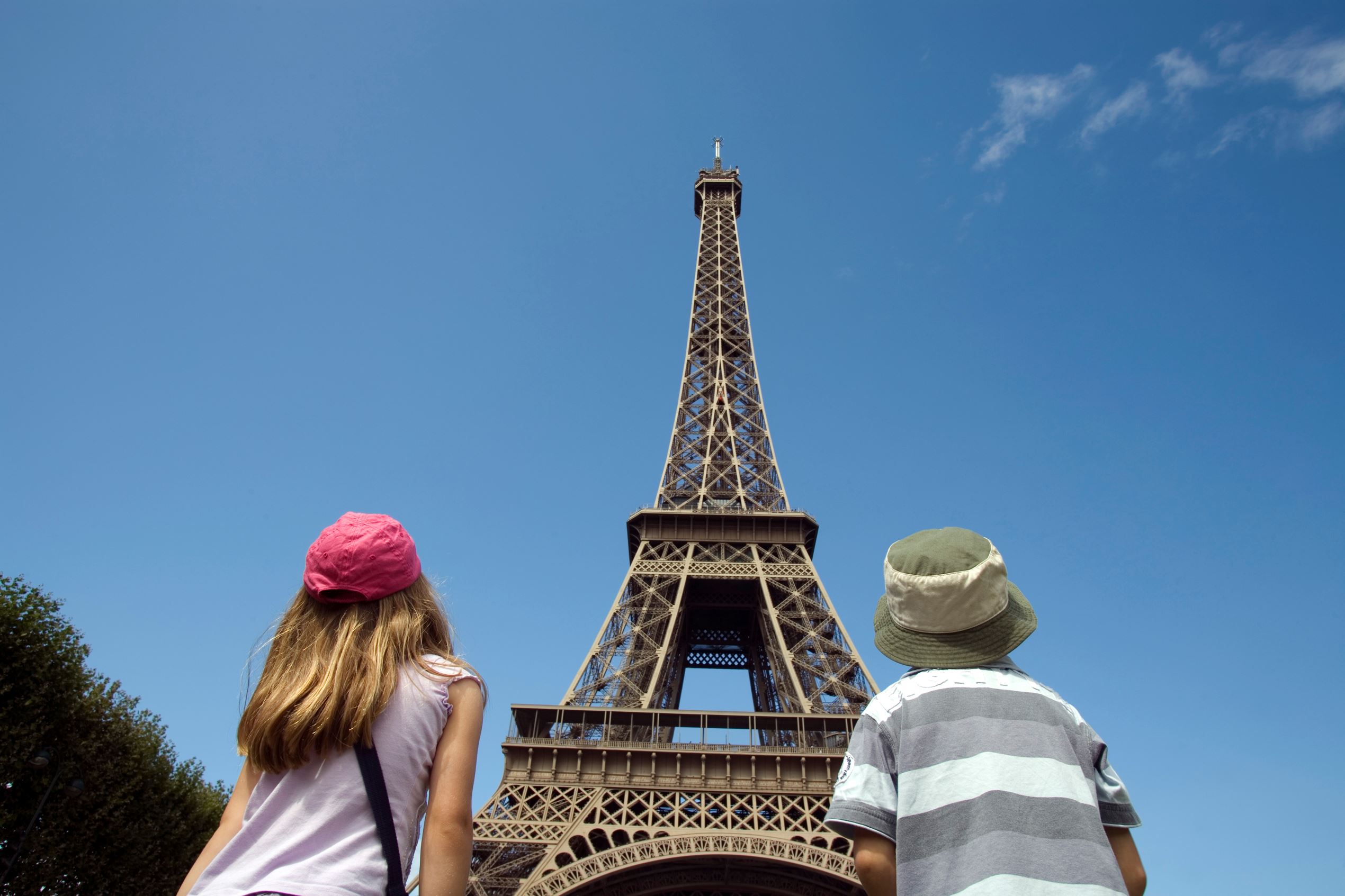 © Will Gray/Getty Images Boy and girl looking up at the Eiffel Tower. Will Gray/Getty Images